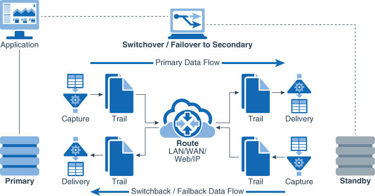 Oracle GoldenGate supports an active-passive bi-directional configuration, where Oracle GoldenGate replicates data from an active primary database to a full replica database on a live standby system that is ready for failover during planned and unplanned outages.