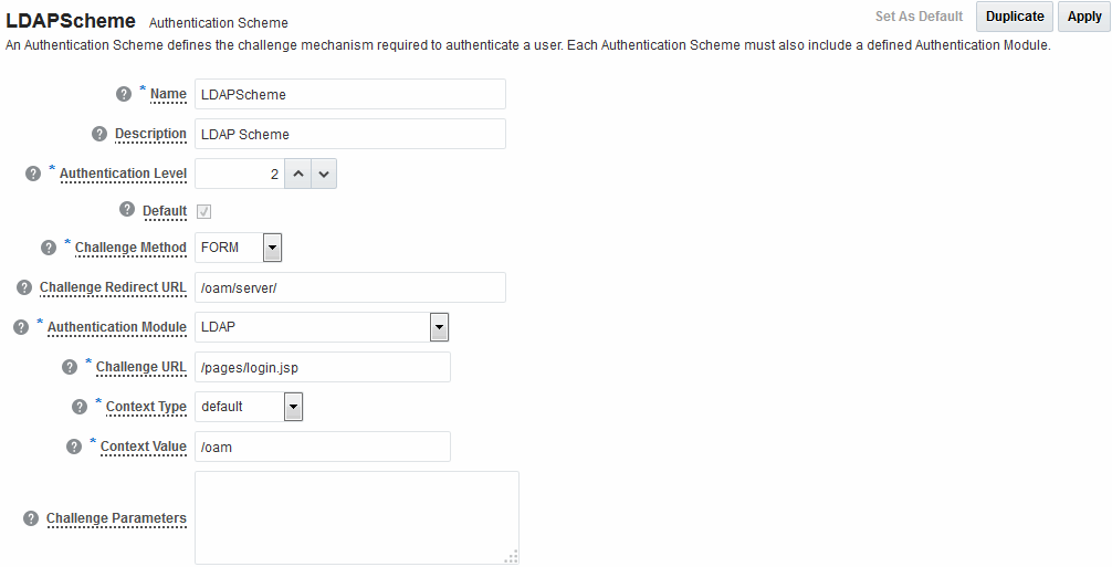 1. Use the Oracle Access Management Console to create or find the desired scheme (Authentication POST Data Handling).