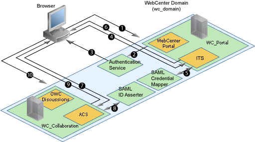 Single sign-on provides authentication across a topology’s components allowing users to log in once, rather than having to log in each time they access a component. Without implementing single sign-on, users must provide credentials each time they access components, such as discussions or Content Server, from WebCenter Portal.