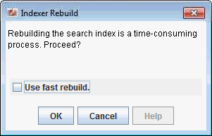 Rebuild the collection and update the search index using the Repository Manager utility. When rebuilding the collection, ensure that the Use fast rebuild check box is unchecked in the Indexer Rebuild dialog (Figure 9). For information, see Working with the Search Index in Administering Oracle WebCenter Content.