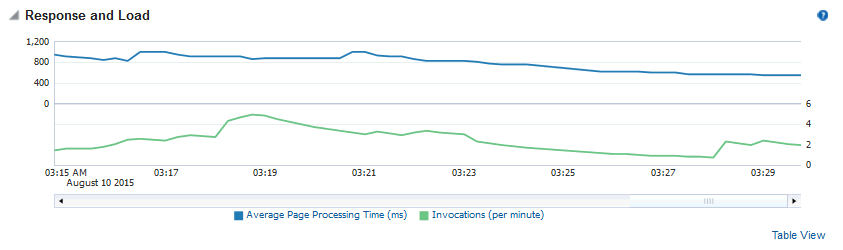 1 The last 10-15 minutes of data is used to calculate recent performance metrics. For details, seeUnderstanding Oracle WebCenter Portal Metric Collection .
