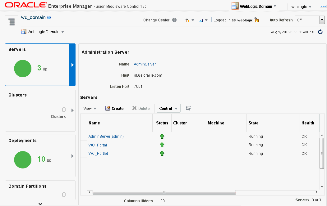 Admin,Operator, orMonitorrole through the Oracle WebLogic Server Administration Console.