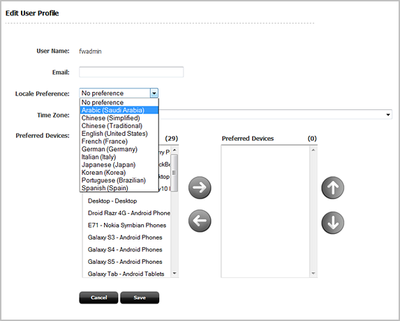 If the user profile does not specify a preference, WebCenter Sites attempts to match the locale setting of that user's browser to a locale from the