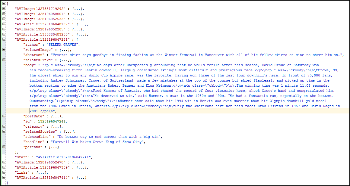 Figure 15-7 JSON Response to Render an Article Displayed on the Skiing Page