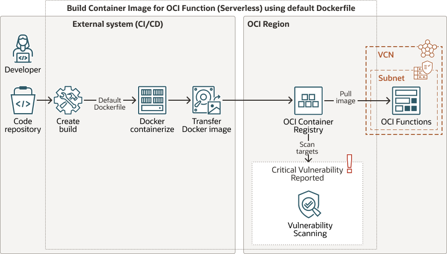 Oracle Cloud Infrastructure Functions is a fully managed, multitenant, highly scalable, on-demand, Functions-as-a-Service (FaaS) platform. It is powered by the Fn Project open source engine. Functions enable you to deploy your code, and either call it directly or trigger it in response to events. Oracle Functions uses Docker containers hosted in Oracle Cloud Infrastructure Registry.