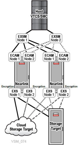 ExS Encryption is included in the base VSM6 or VSM7 code and is configured by Oracle Services personnel as part of the VSM configuration. ExS encryption is a separate feature from VTSS encryption, which encrypts data residing in the VTSS disk buffer.