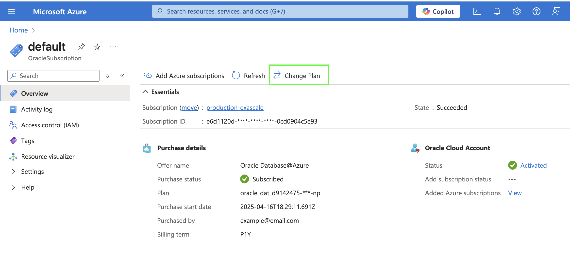 En la página de detalles de OracleSubscription, seleccione Cambiar plan.