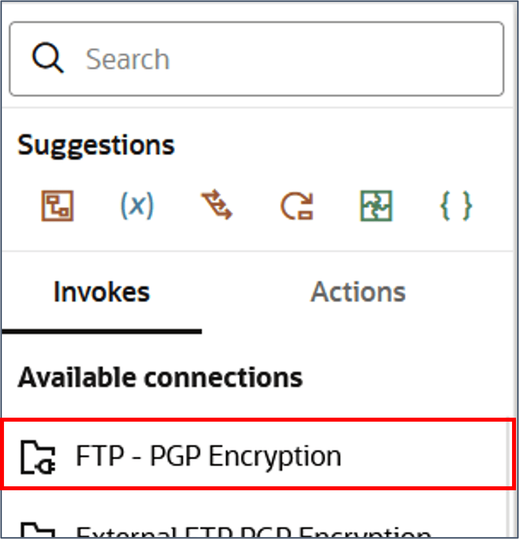 - Haga clic en el icono + después de Programar para abrir el cuadro Sugerencias. En el separador Invokes (Llamadas), seleccione la conexión FTP.