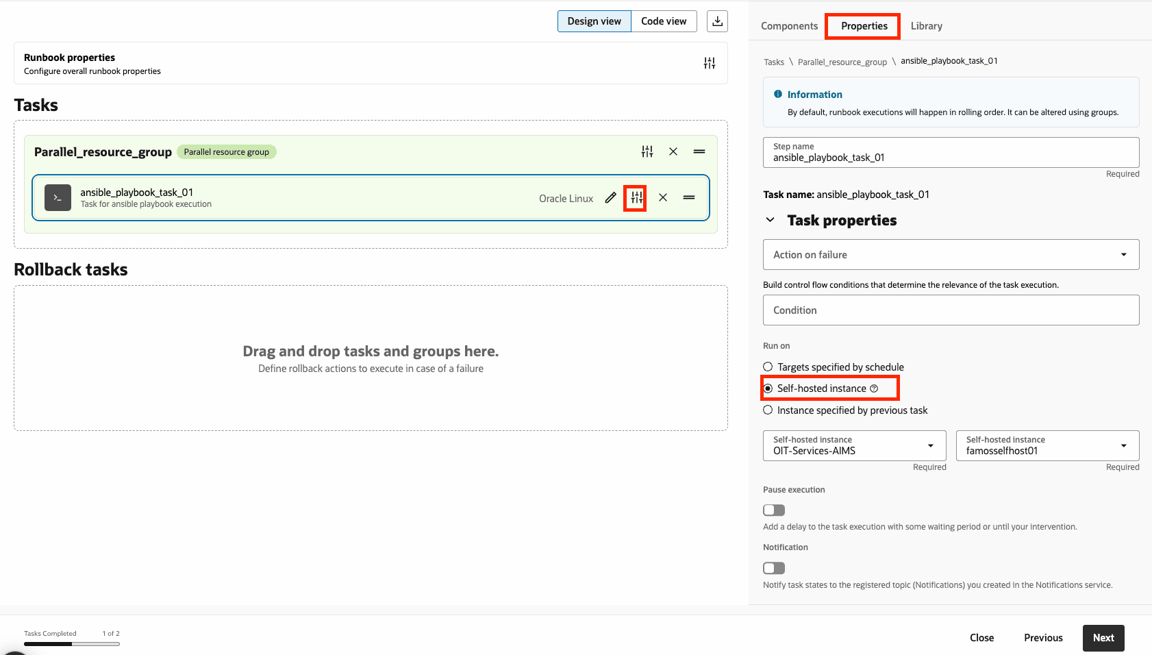 - Agregue más tareas para personalizar el runbook según sea necesario.