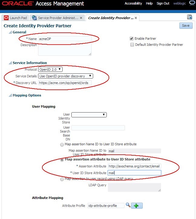domainRuntime(). - Cree el partner de OP OpenID 2.0: