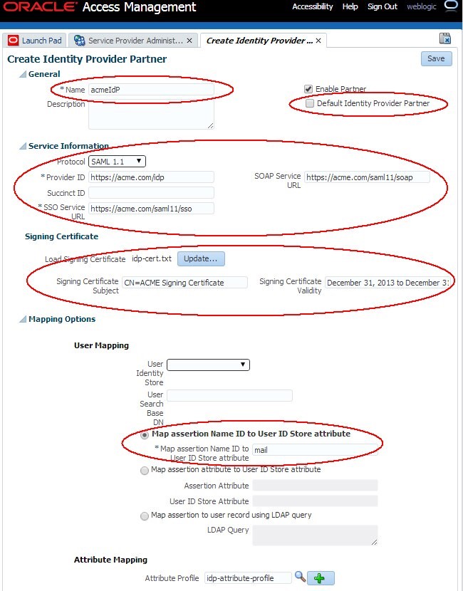 Create SAML 1.1 and OpenID 2.0 IdP Partners in OAM and SP
