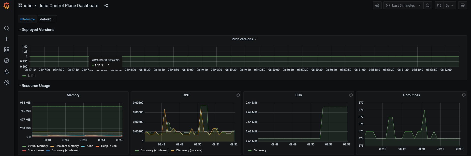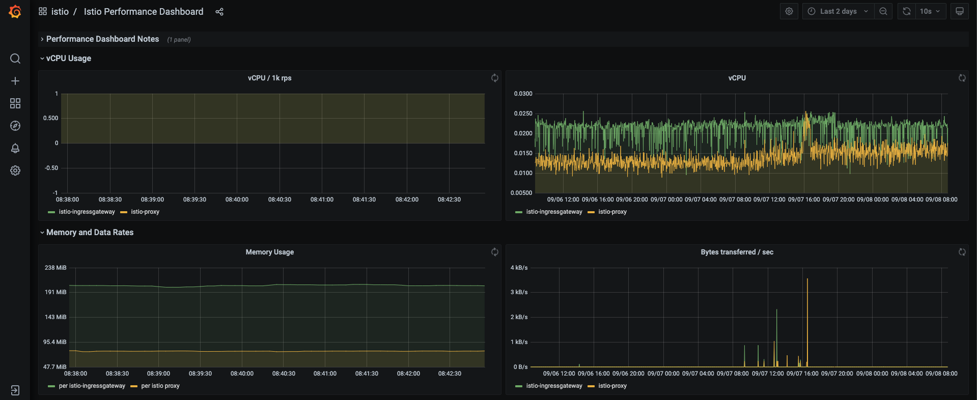 Vous pouvez également installer Grafana séparément. En outre, il est possible d'importer les tableaux de bord préconfigurés d'Istio.