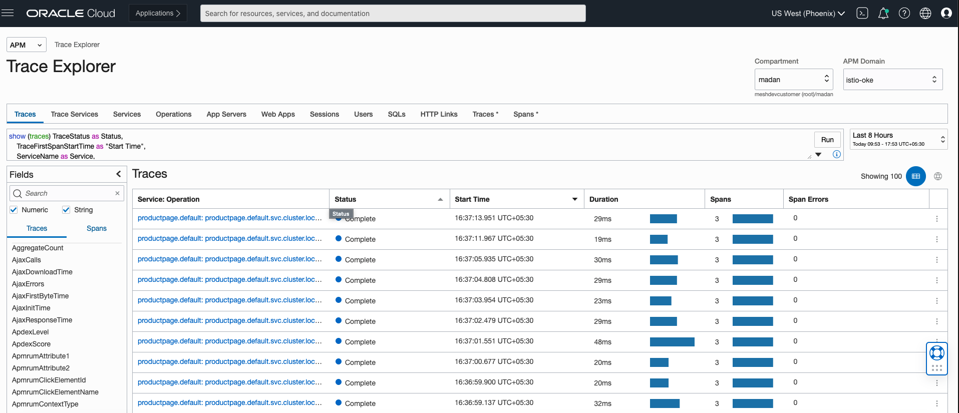Dans cette section, vous allez explorer les mesures de performances et les fonctions de trace fournies par les applications d'intégration Istio.