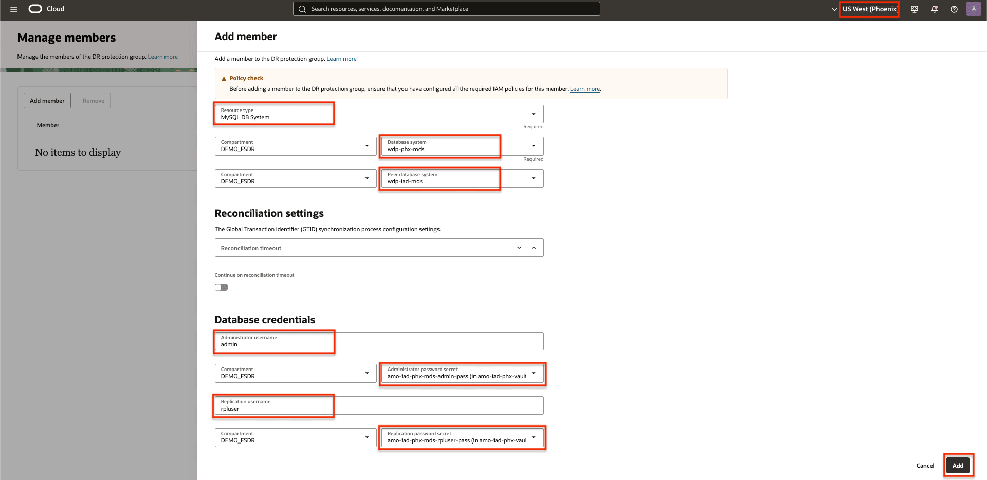 - Tâche 2 : Ajouter MySQL HeatWave aux groupes de protection RS des deux régions