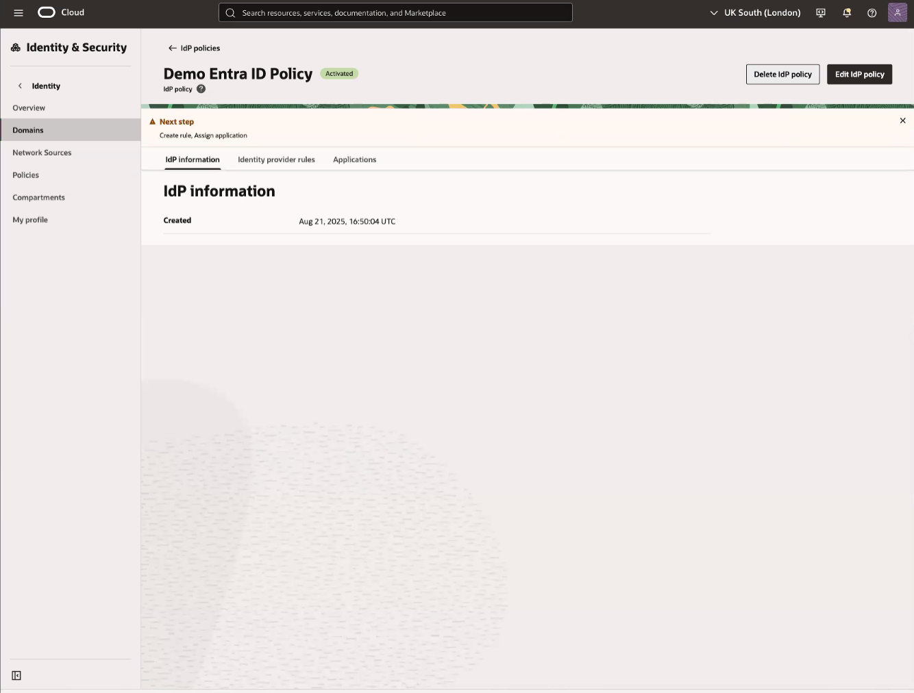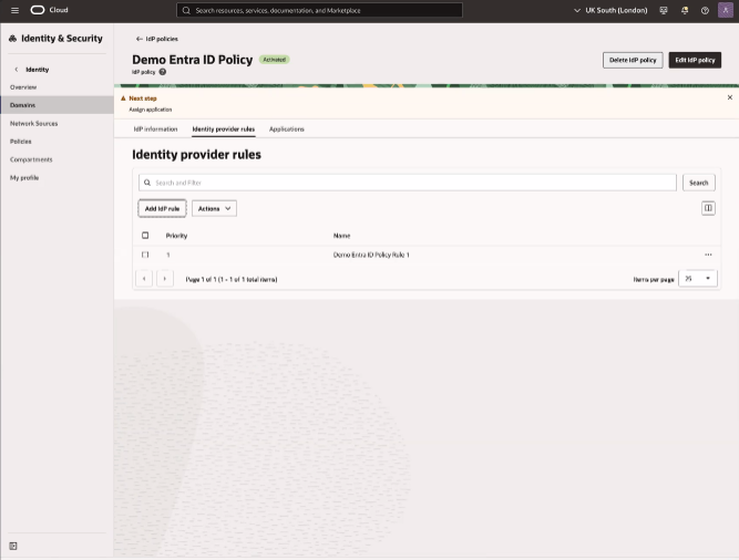 Sur la page de détails de la stratégie Stratégie de fournisseur d'identités par défaut, dans la section Règles de fournisseur d'identités, sélectionnez Modifier la règle IdP.