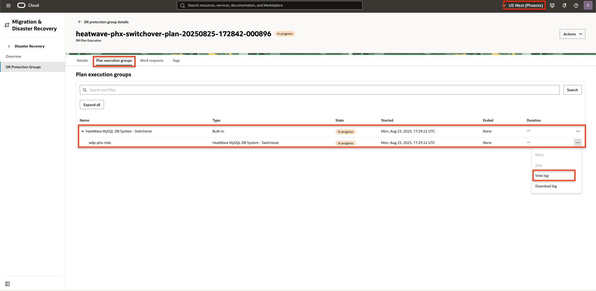 - Tâche 2 : ajout de MySQL HeatWave aux groupes de protection de récupération après sinistre dans les deux régions