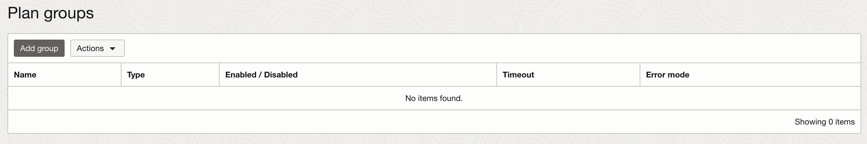 Sous Groupes de plans, cliquez sur Ajouter un groupe pour créer un groupe de plans personnalisé afin d'arrêter la base de données PostgreSQL dans la région Francfort. Entrez le nom de groupe