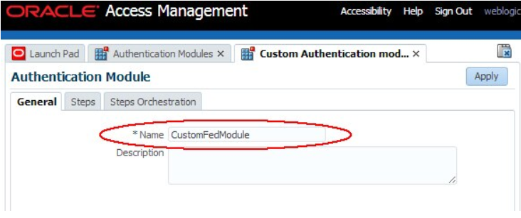 /oam/server/). - Sélectionnez le nouveau module d'authentification personnalisé (