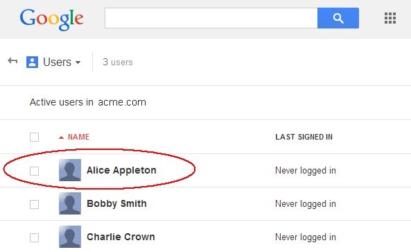 Les utilisateurs de Google Apps sont identifiés de manière unique par leurs adresses e-mail qui ont été définies lors de leur création.