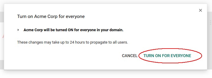 - Confirmez l'opération en cliquant sur TURN ON FOR EVERYONE.