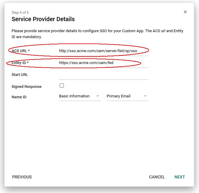 - Entrez l'ACS (Assertion Consumer Service URL)