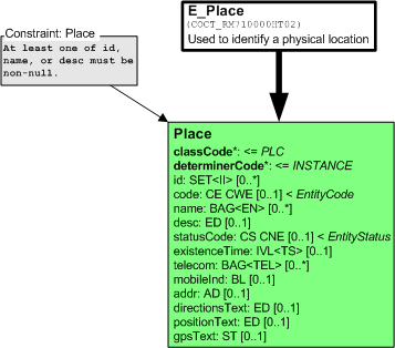 The E_Place (universal) CMET represents a physical place or site with it's containing structure. It includes locating information such as addresses, directions, and GPS coordinates.