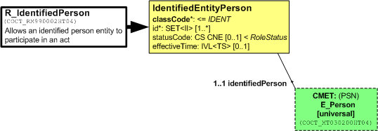 The R_IdentifiedPerson (identified/confirmable) CMET identifies a person as an iIdentified entity that can participate in an act.