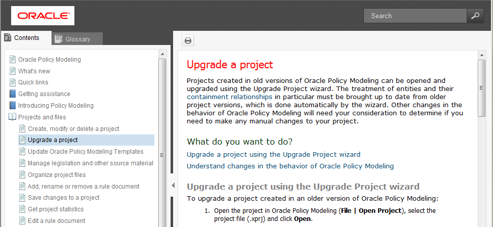 Note that the list of languages for the help will be those that were selected during the installation of Oracle Policy Automation. See the Oracle Policy Modeling Installation Guide in your Oracle Policy Modeling installation folder for further details.