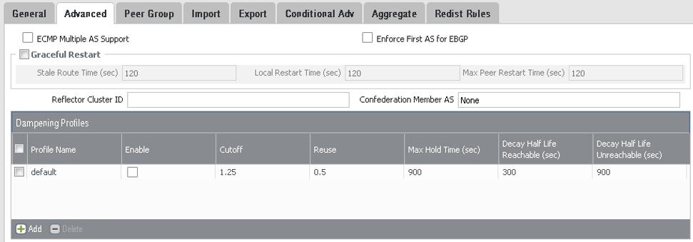 - L'abilitazione o la disabilitazione di ECMP su un router virtuale esistente fa sì che il sistema riavvii il router virtuale. Il riavvio potrebbe causare l'interruzione delle sessioni esistenti.