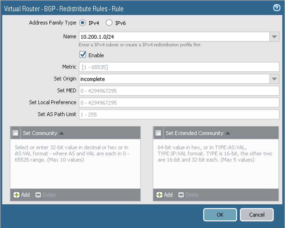 In questo esempio viene utilizzato il router virtuale predefinito. Utilizzare il router virtuale corretto per questo ambiente di rete.