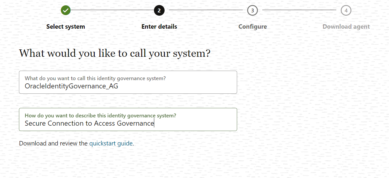 Immettere il nome del sistema in Cosa si desidera chiamare questo sistema di identity governance?