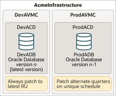 Un'infrastruttura Exadata per ospitare due AVMC. È denominato AcmeInfrastructure.