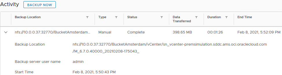 Perform a backup of vCenter Appliance to Oracle Cloud Infrastructure Object Storage