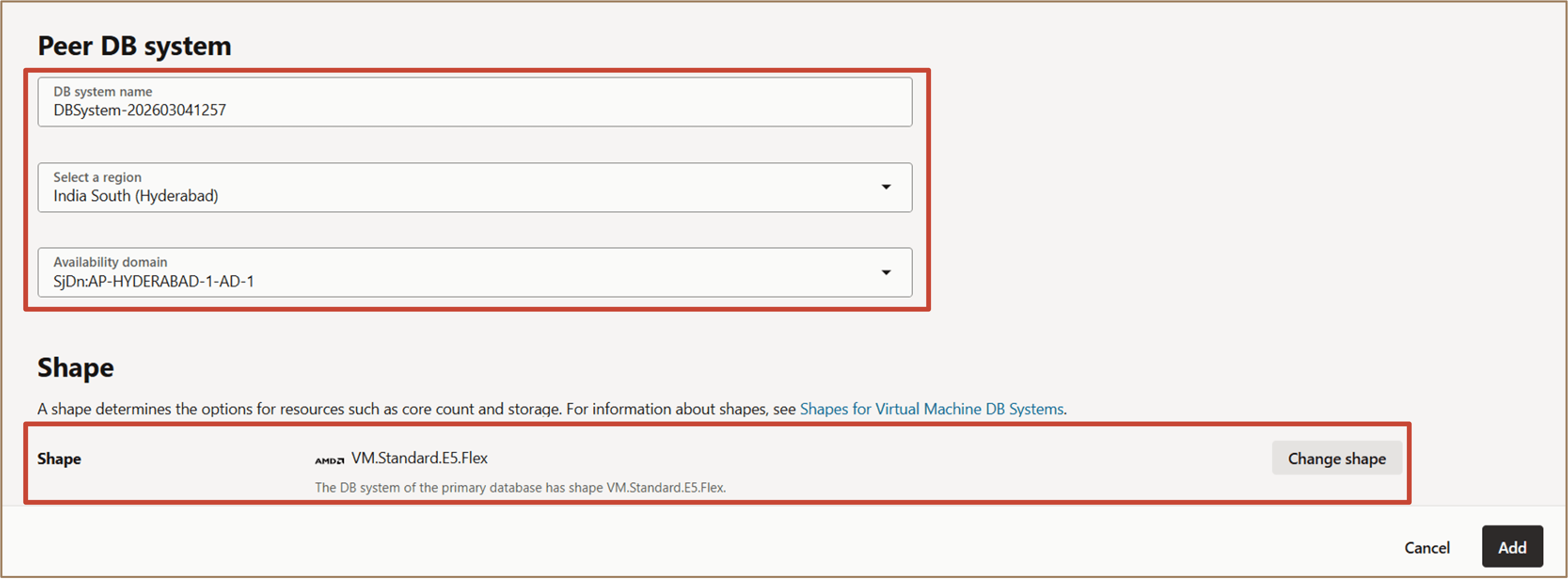 Nella sezione Sistema peer DB, fornire i dettagli riportati di seguito.
