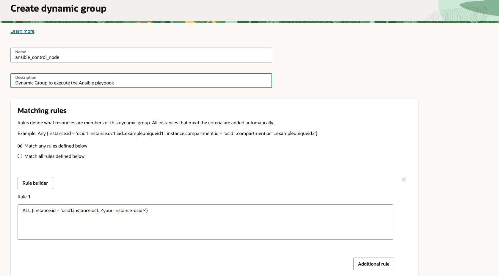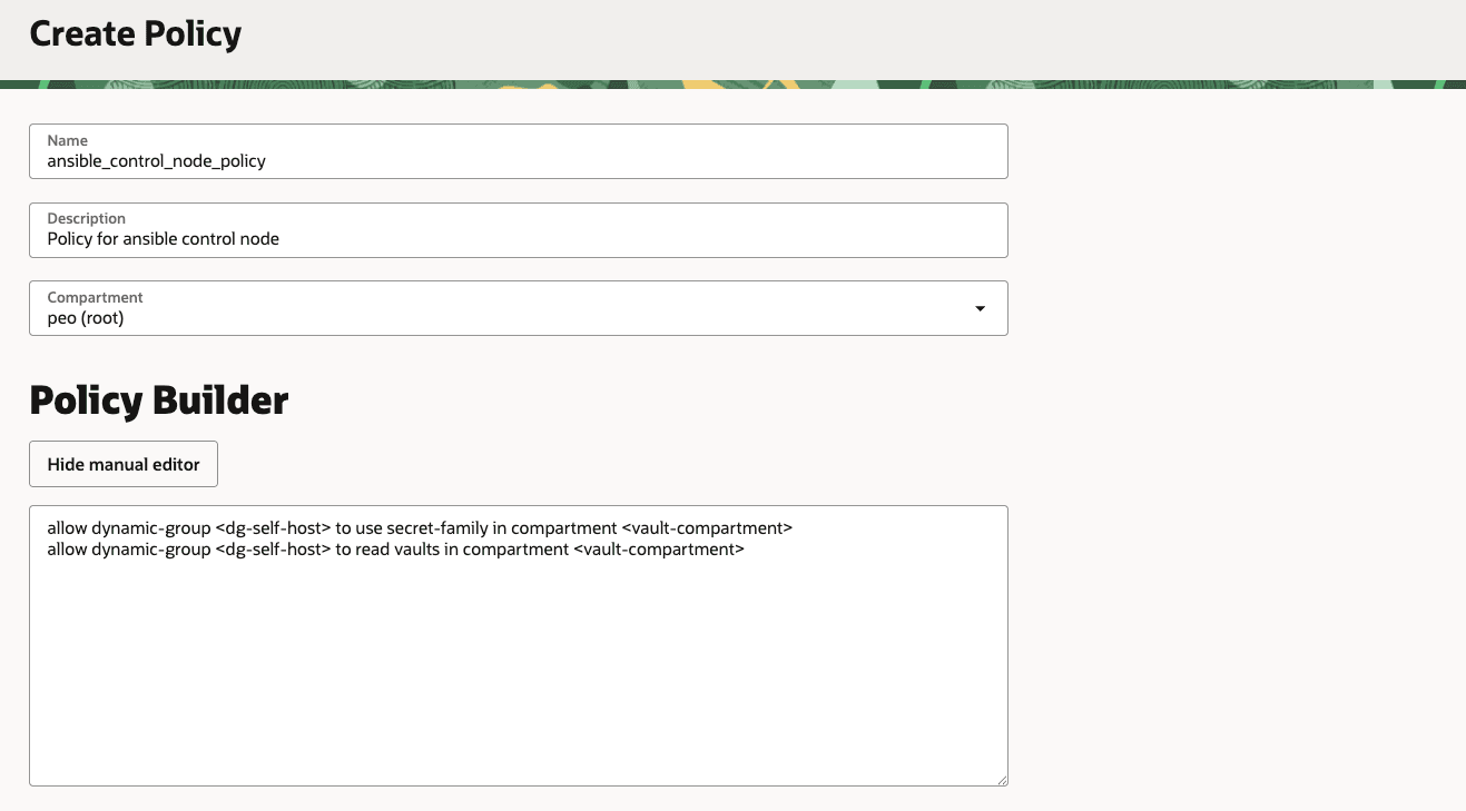- Ansible Playbook: il playbook Ansible non include direttamente le chiavi SSH. Ha invece la logica per recuperare la chiave SSH dal vault OCI in fase di esecuzione utilizzando i principal delle istanze.