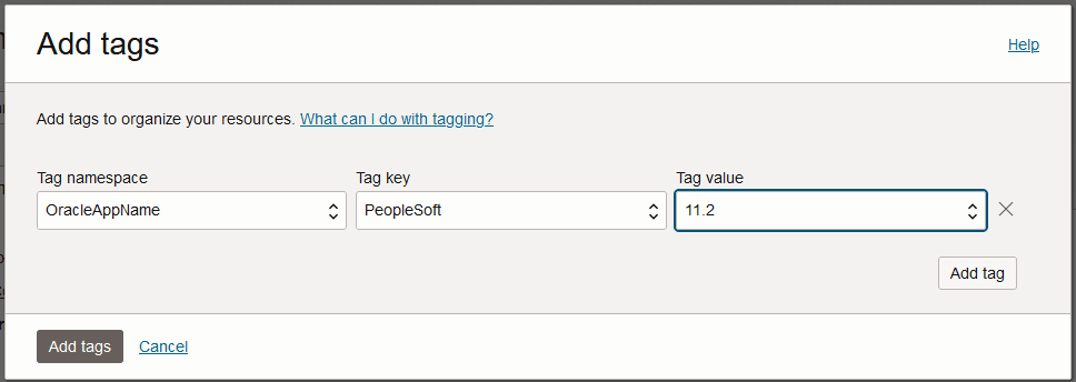 ノート: Oracle標準タグは、Oracle Public CloudおよびExadata Cloud@Customerデプロイメントにのみ適用されます。