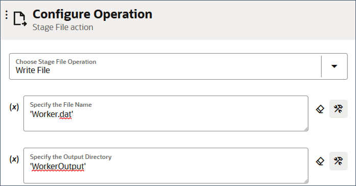 - 「ファイルの書込み」ステージ・ファイル操作を選択します。