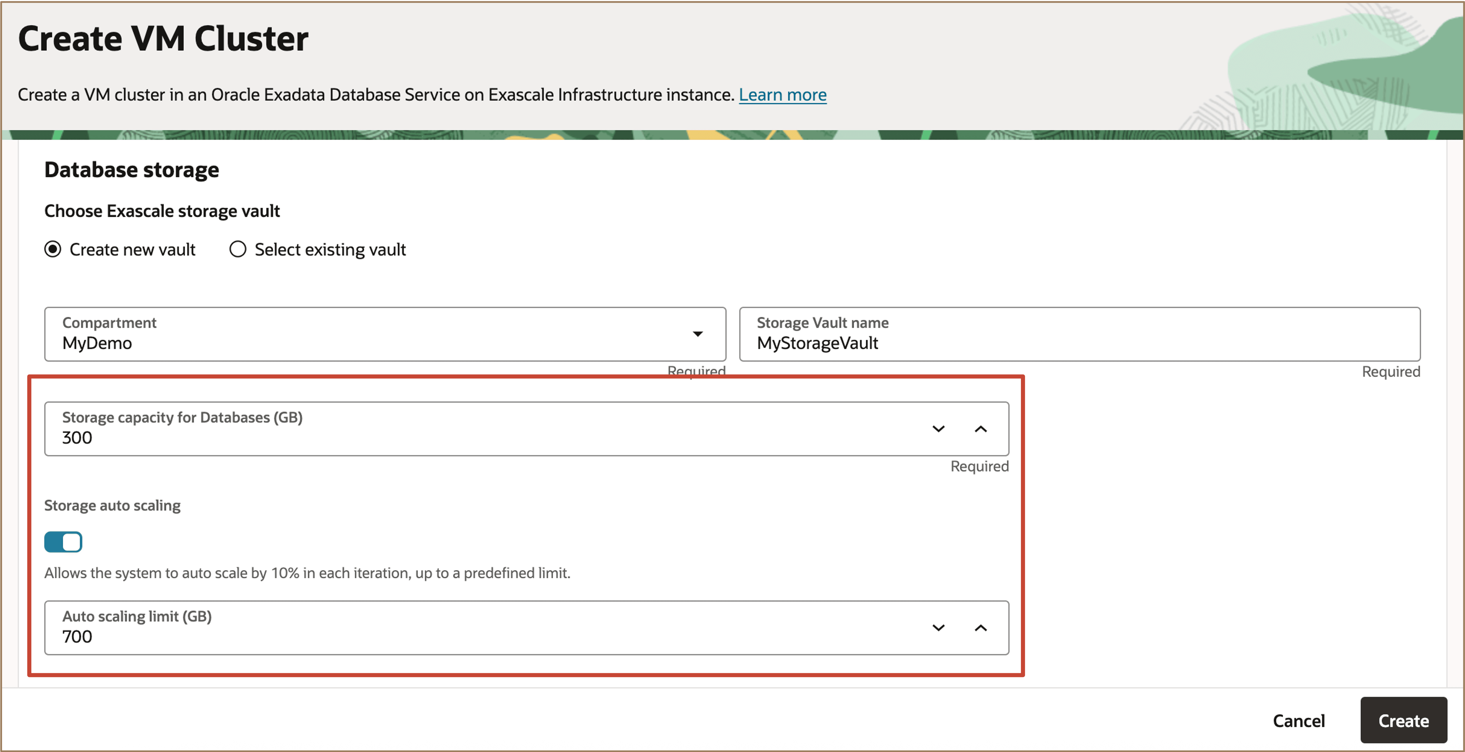 - ストレージ自動スケーリングが有効になっているExascale Storage Vaultをプロビジョニングします。