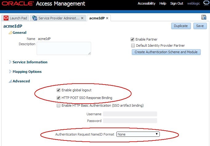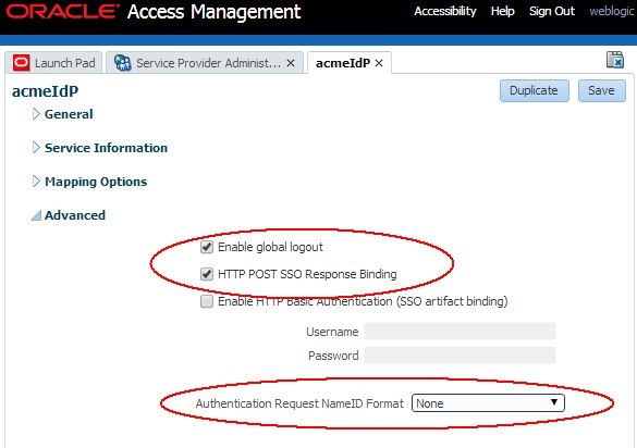 HTTP基本認証: アーティファクト・バインディングを使用する場合、OAM/SPはSOAPを介して直接IdPに接続し、SAMLアサーションを取得する必要があります。IdPによってSOAPチャネルでHTTP Basic認証が有効になり、OAM/SPがIdPにユーザー名/パスワードを提供する必要がある場合があります(これらの資格証明は、IdPとSPの管理者の間で合意されています)。