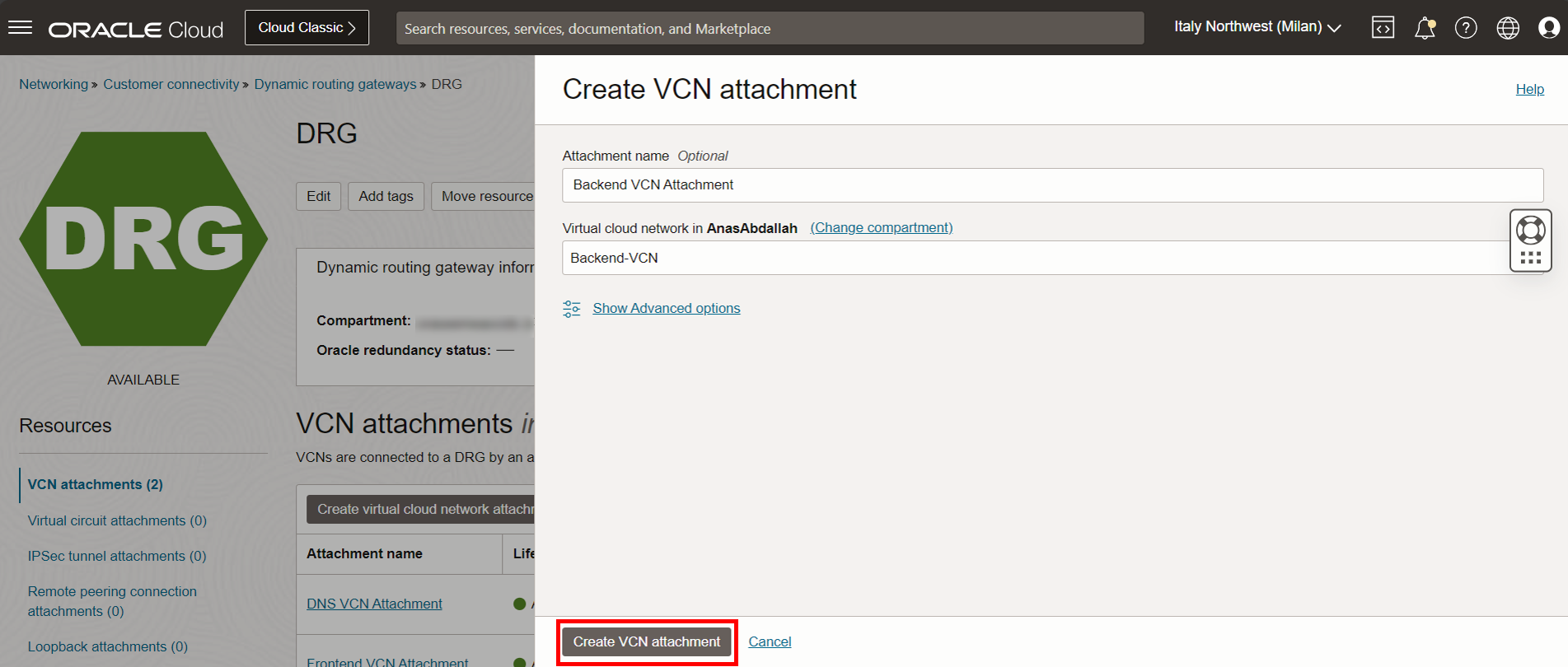 - 백엔드-VCN을 선택합니다.