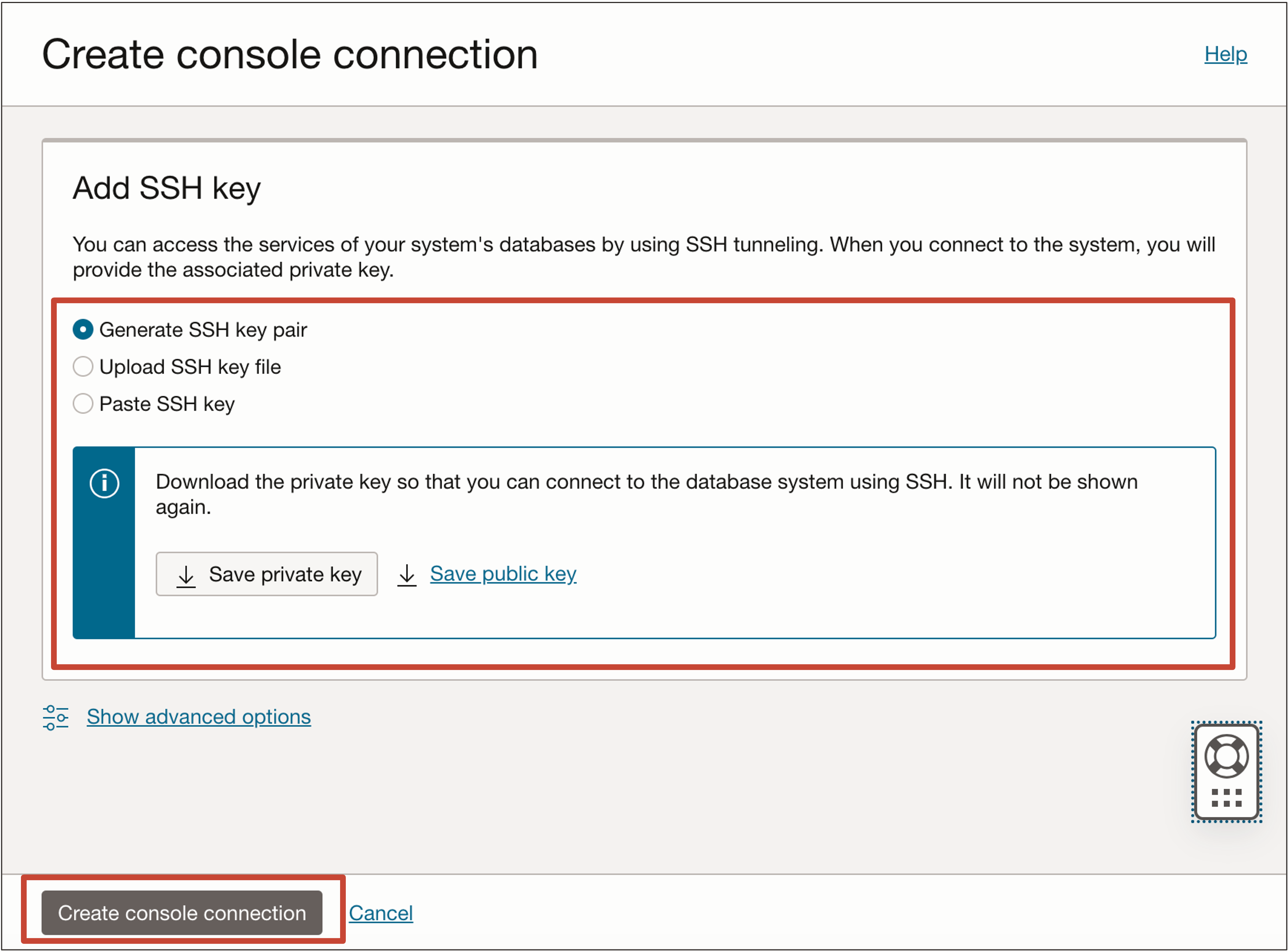 직렬 콘솔 접속 생성 창에서 SSH 키를 추가하여 사용자가 가상 머신의 가상 직렬 콘솔에 쉽게 액세스하고 콘솔 접속 생성을 누릅니다.