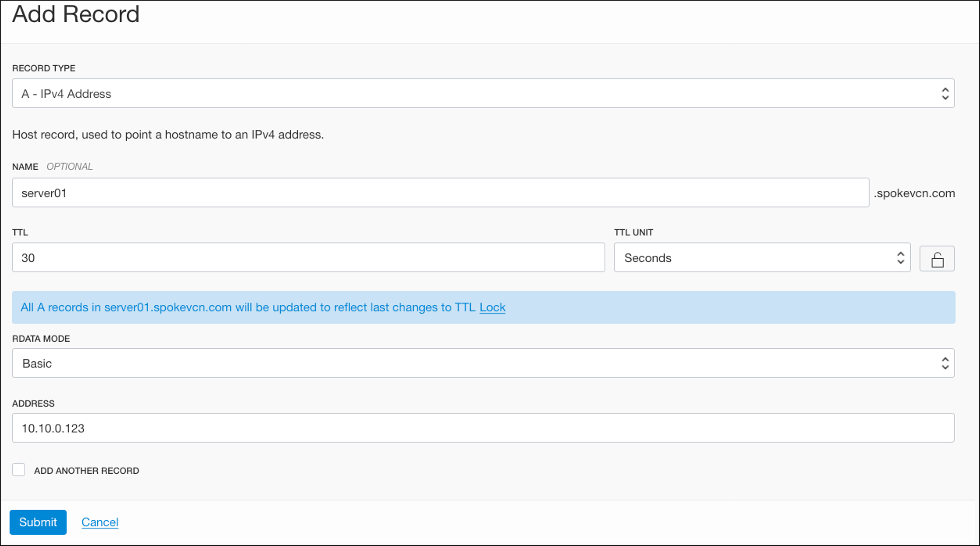[opc@primaryvnic ~]$ host server01.spokevcn.comserver01.spokezone.com has address 10.0.0.2
