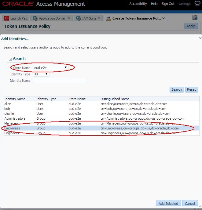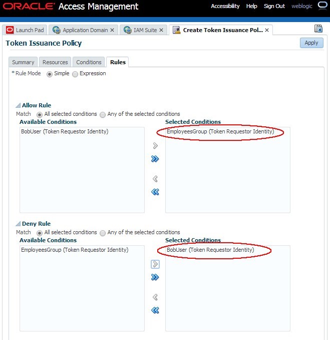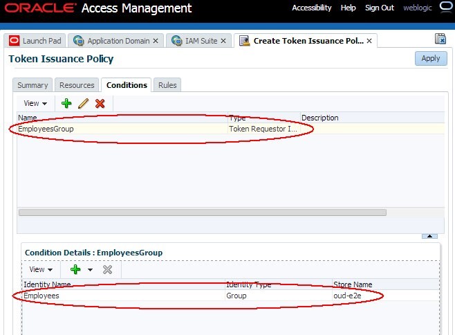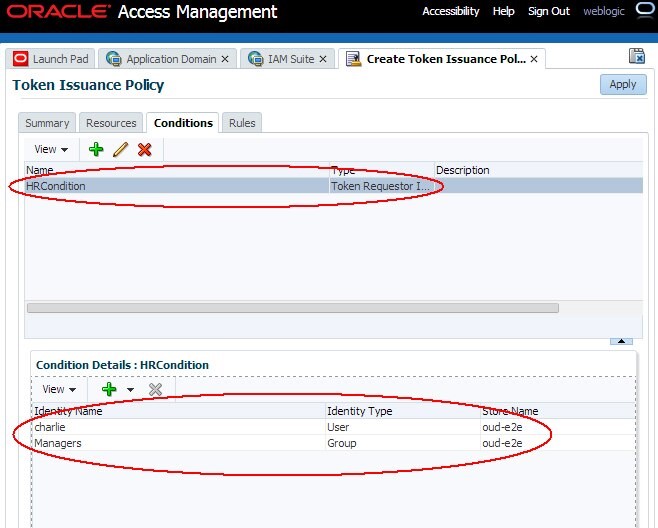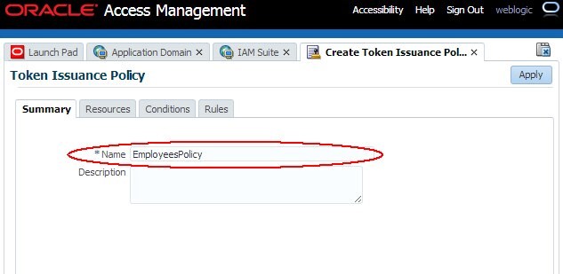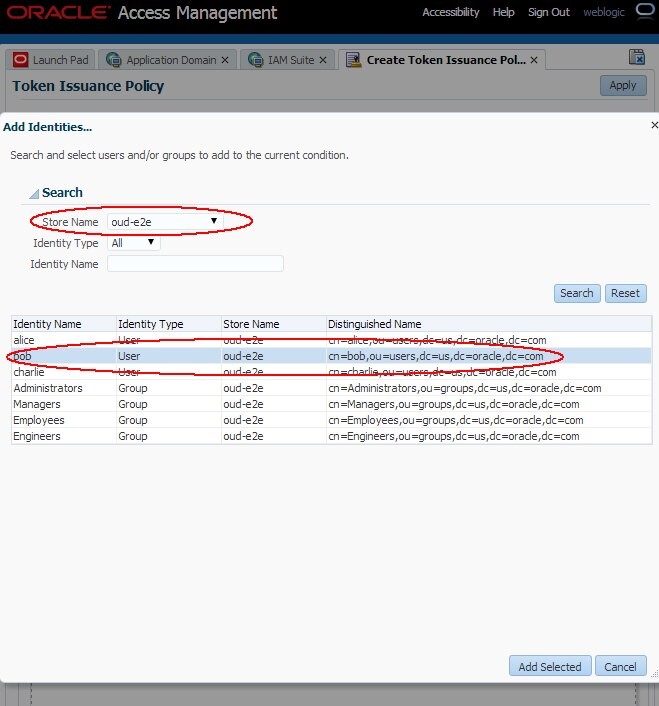 이 문서에 나열된 예제에서는 모든 토큰 발행 정책을 OAM 관리 콘솔의 IAM Suite 애플리케이션 도메인에 추가합니다.