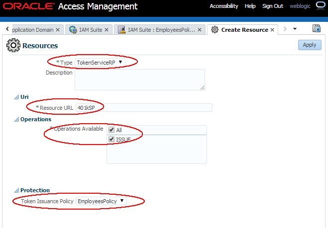 Type: TokenServiceRPResource URL, Federation Admin 섹션에서 생성한 SP 파트너의 이름: 401kSPOperations: 모두Token Issuance Policy: EmployeesPolicy
