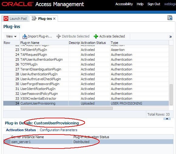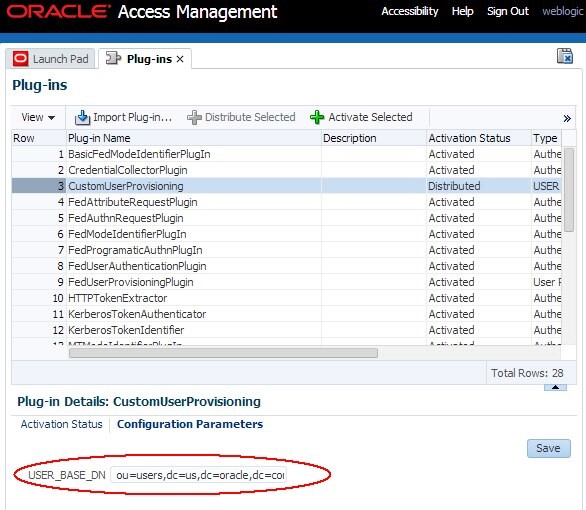 userprovisioningplugin속성을 업데이트합니다. 사용자정의 플러그인을 사용하도록 OAM을 구성하고 속성을 플러그인 이름으로 설정합니다(예:CustomUserProvisioning).putStringProperty("/fedserverconfig/userprovisioningplugin","CustomUserProvisioning") -