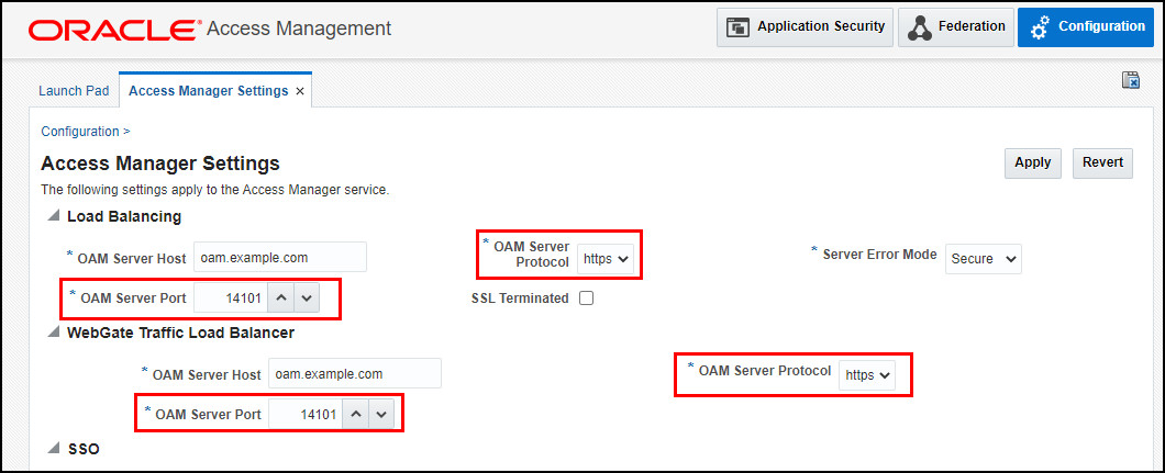 로드 밸런싱 및 WebGate 트래픽 로드 밸런서에서 다음을 설정하고 적용을 누릅니다.