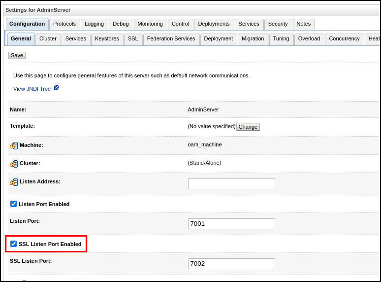 이 섹션에서는 이전에 생성된 키 저장소를 사용하여 SSL을 사용하도록 OAM AdminServer을 구성합니다.