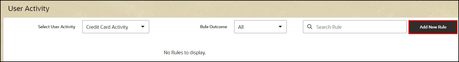 신용 카드 활동 타일에서 0 규칙 링크를 누릅니다. User Activity 페이지가 나타납니다.