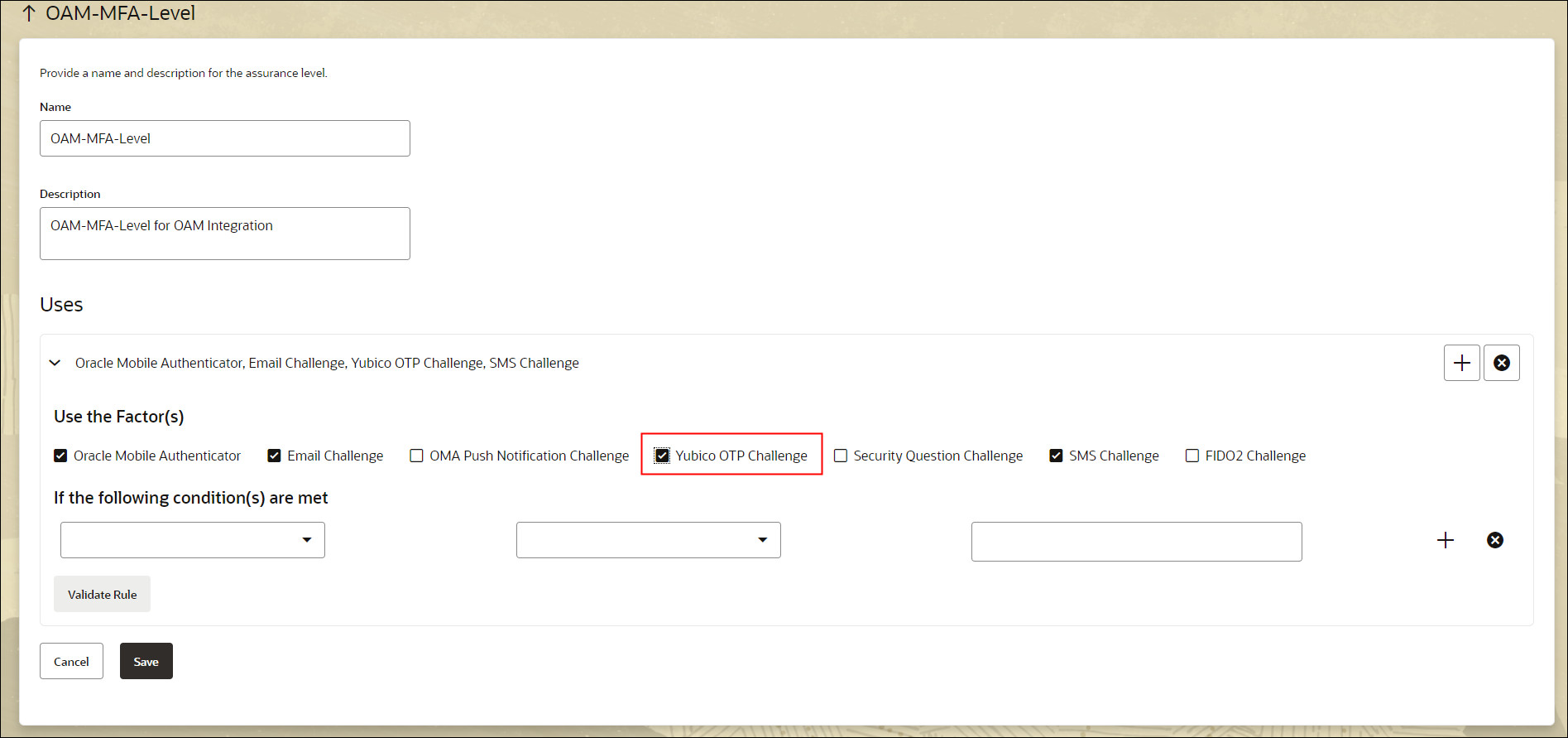 보증 레벨 탭에서 보증 레벨을 누릅니다. 예: OAM MFA-Level.