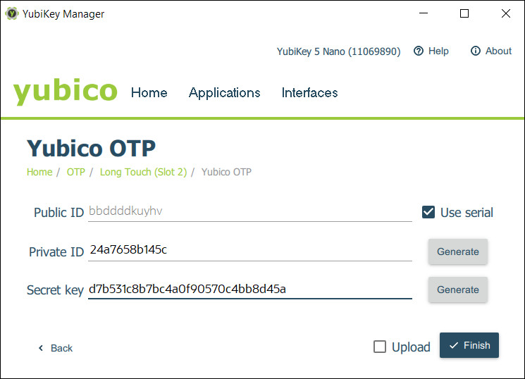 Yubico OTP 화면에서 다음을 수행합니다.